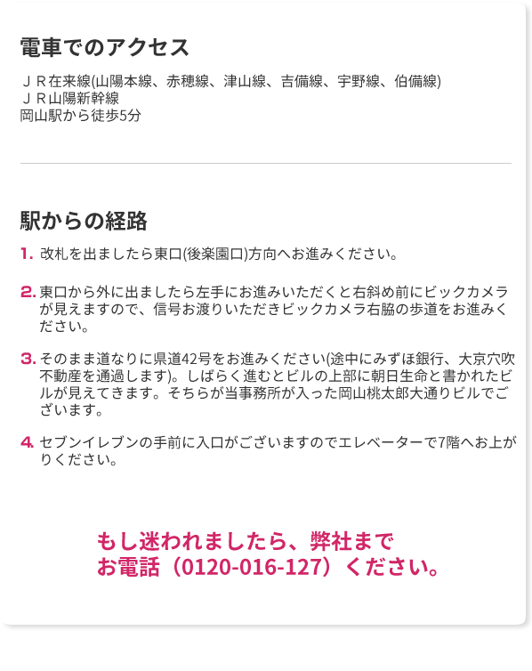 また、お急ぎの方は、電話でもご相談を受け付けております。お気軽にお電話ください。経験豊富なスタッフが迅速に対応いたします。
