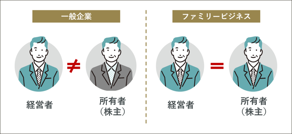 ファミリービジネスでは、経営陣が会社を所有する株主であることがほとんどだからです。