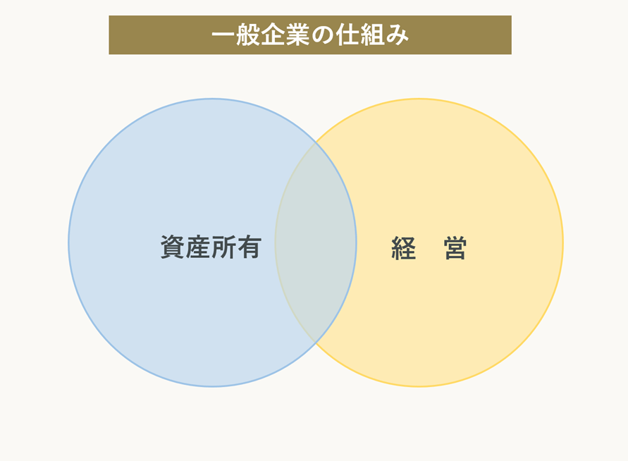 対して、一般企業は「資産所有・経営」の2つの要素しかないため、仕組みがシンプルです。