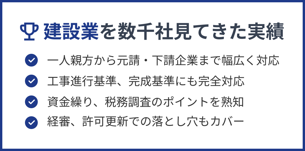 実務上、何百時間とかかる建設業の税務業務を、すべてこちらで引き受けます。