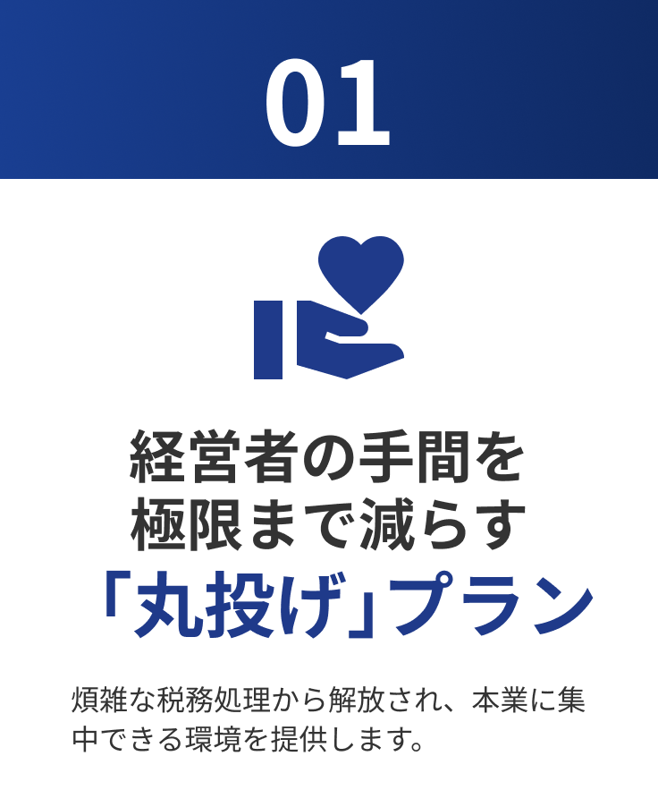 「建設業税務顧問コミコミプラン」では、建設業の税務を本当に「丸投げ」できます。