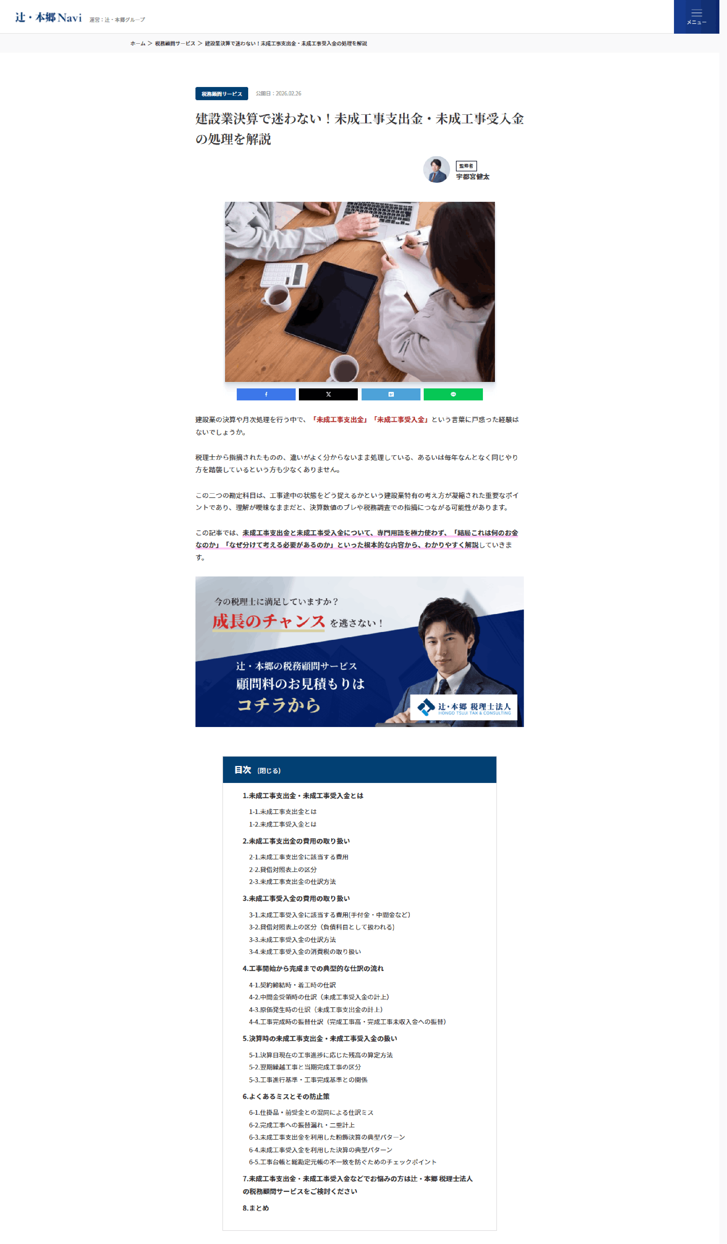 2026.02.26「建設業決算で迷わない!未成工事支出金・未成工事受入金の処理を解説」をアップロードしました辻・本郷Naviで「建設業決算で迷わない!未成工事支出金・未成工事受入金の処理を解説」をアップロードしました