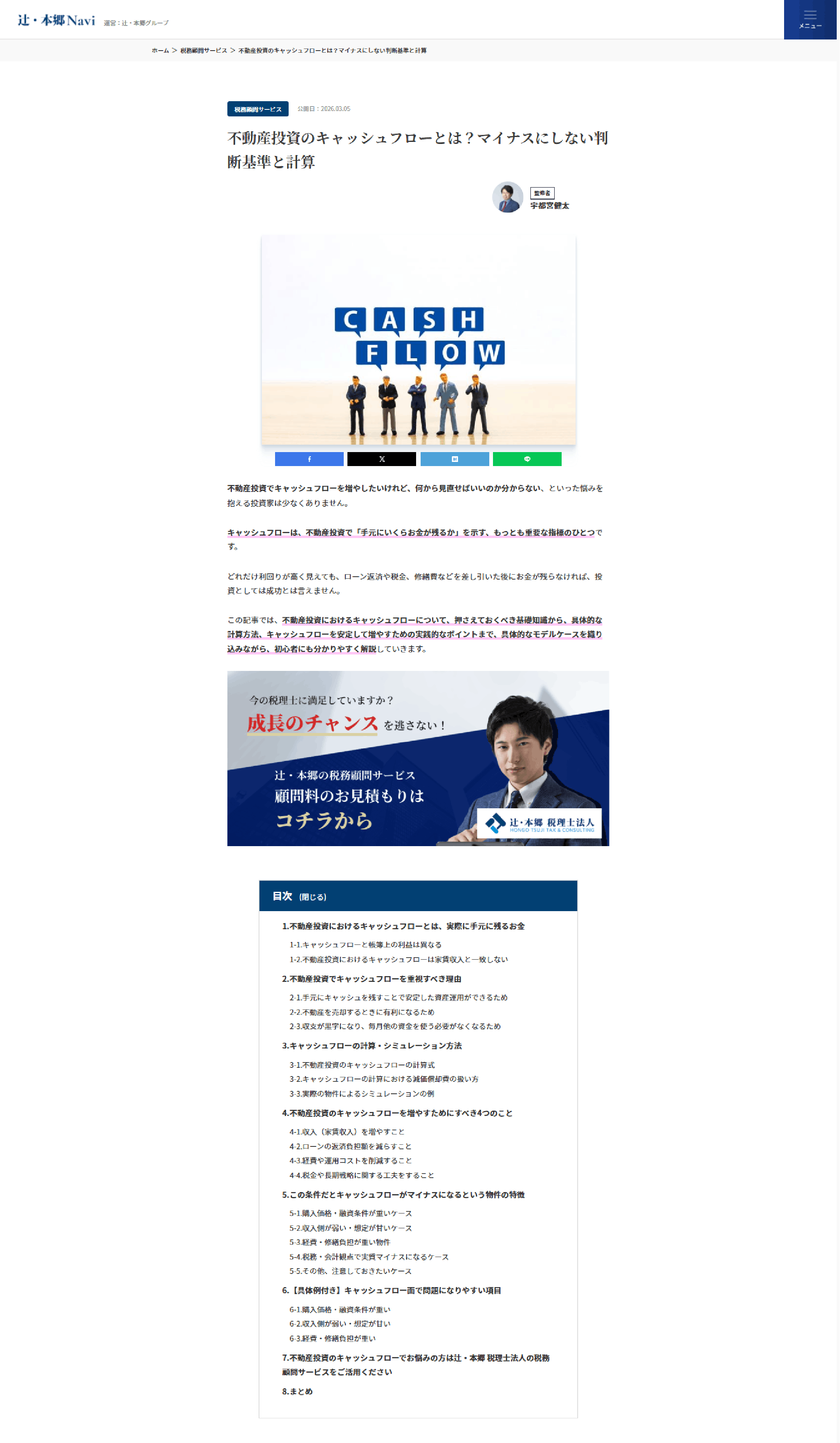 2026.03.05「不動産投資のキャッシュフローとは?マイナスにしない判断基準と計算」をアップロードしました辻・本郷Naviで不動産投資のキャッシュフローとは?マイナスにしない判断基準と計算をアップロードしました