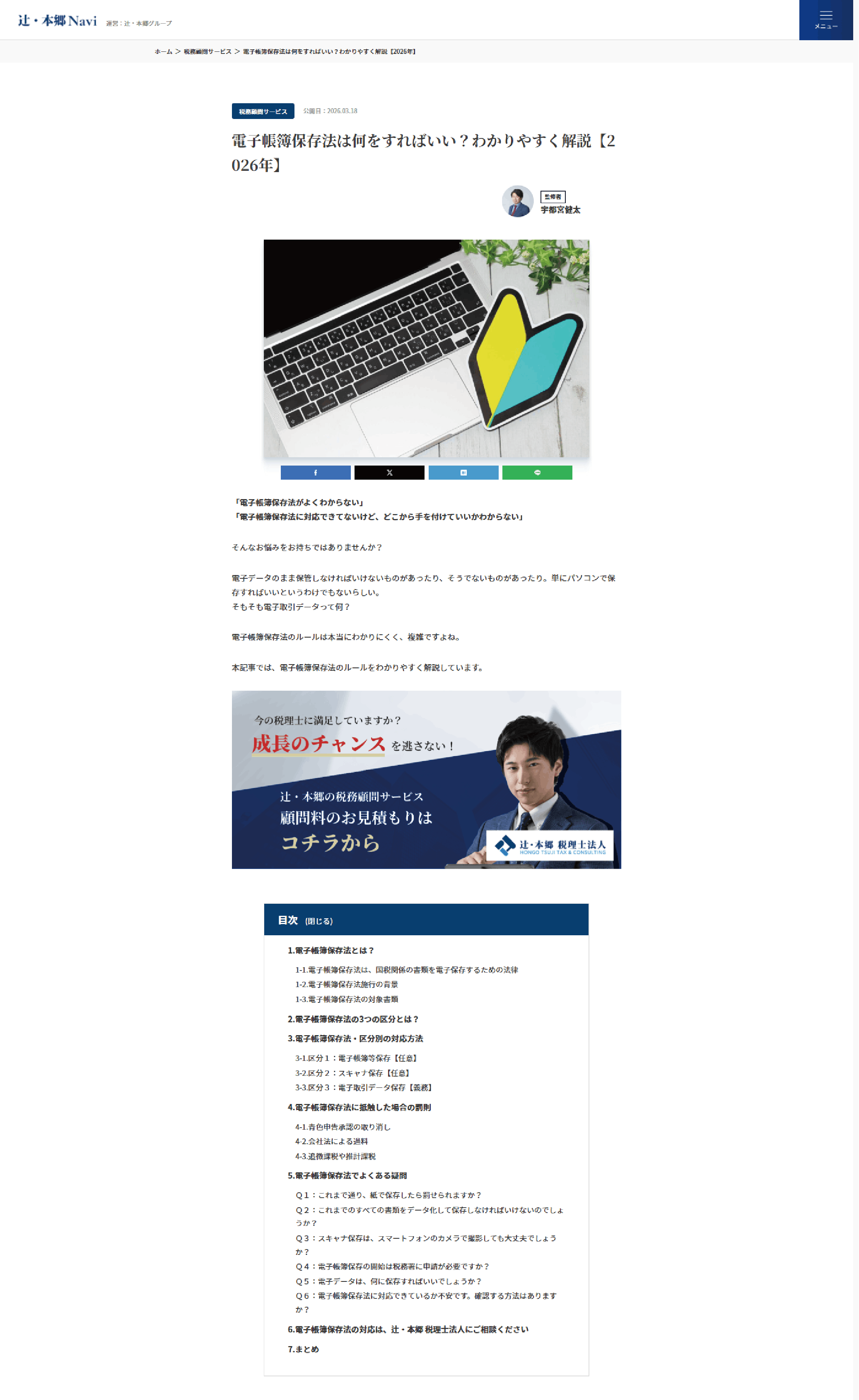 2026.03.18「電子帳簿保存法は何をすればいい?わかりやすく解説【2026年】」をアップロードしました辻・本郷Naviに電子帳簿保存法は何をすればいい?わかりやすく解説【2026年】をアップロードしました