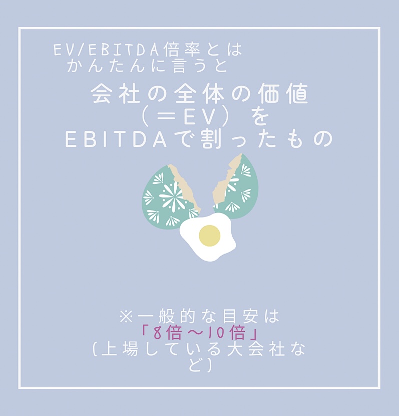 その代わりに使われるのが、EV/EBITDA(イーブイ・イービットダー)倍率という数字です。