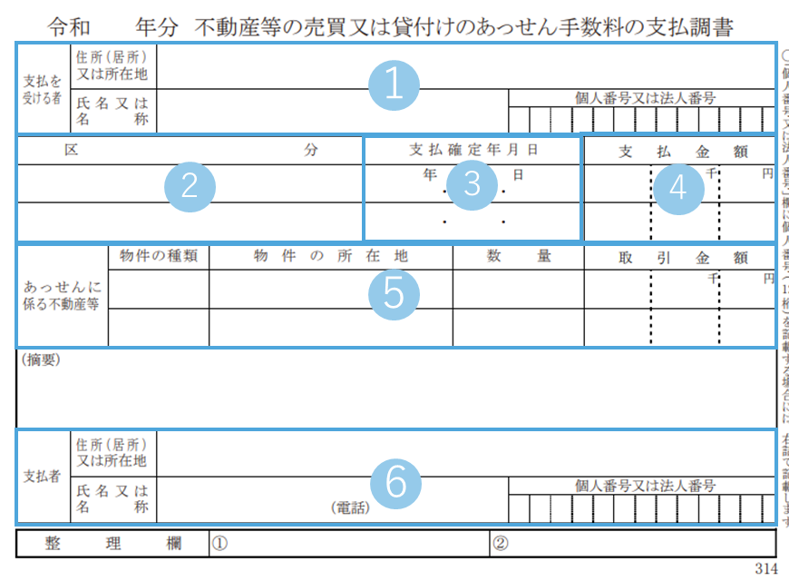 参照 国税庁「F1-6 不動産等の売買又は貸付けのあっせん手数料の支払調書(同合計表)」