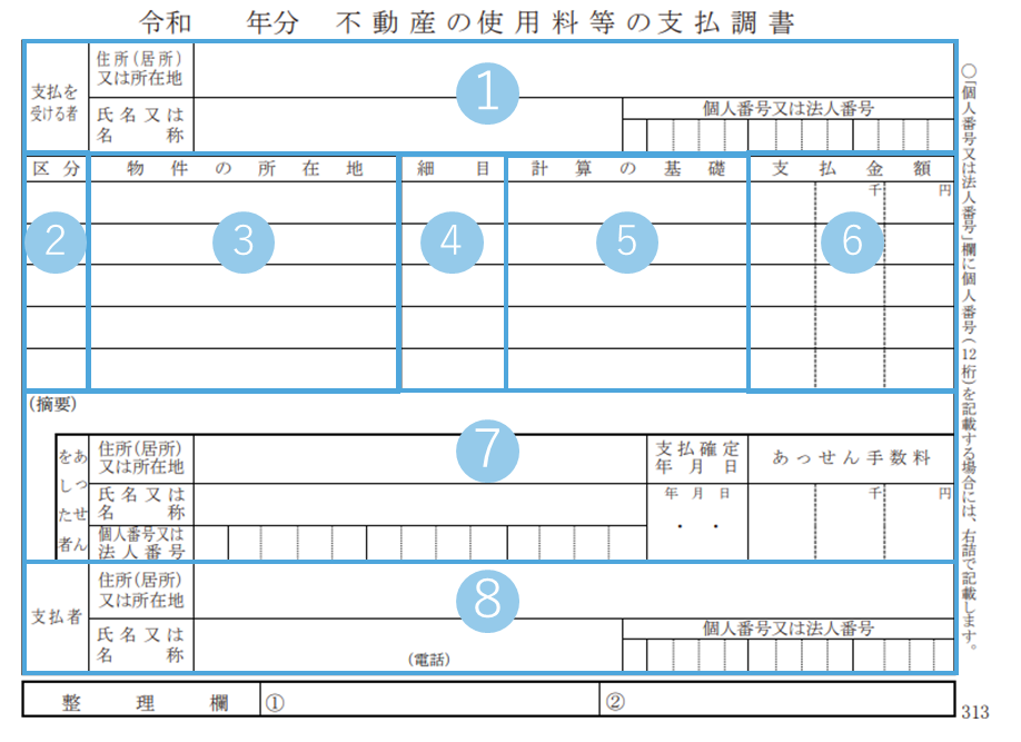 3-3.記入項目:不動産の譲受けの対価の支払調書