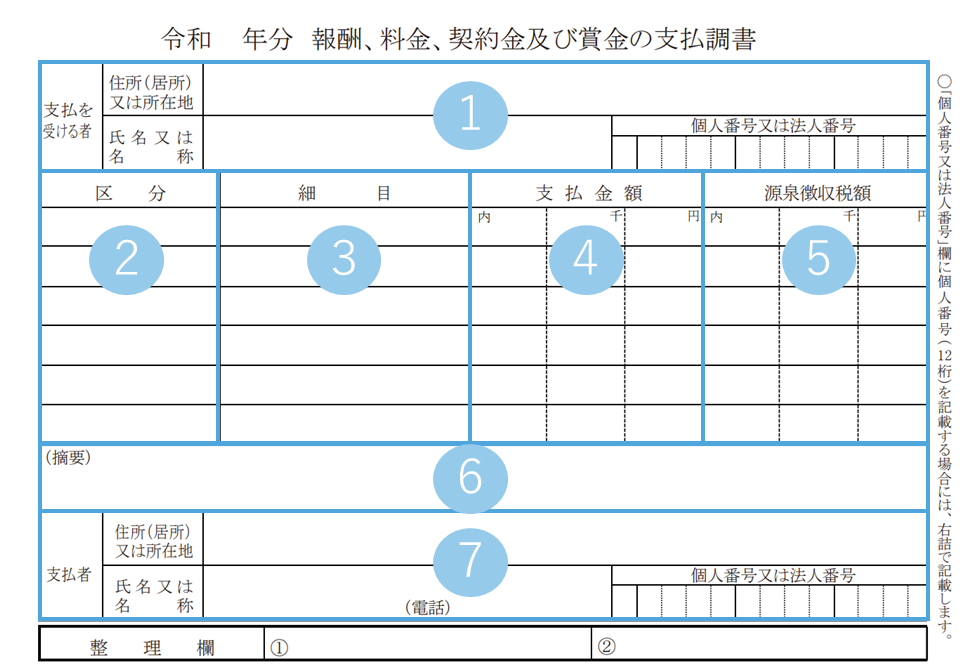 支払調書の作成では、種類ごとに決まった項目を記載します。