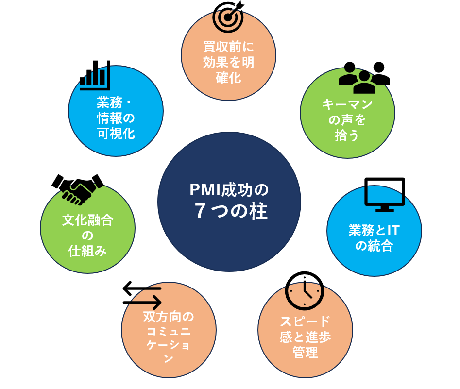 この章では、PMIを成功に導くために実務で特に重要となる7つの視点について解説します。ここを丁寧に進めることが成功の近道です。