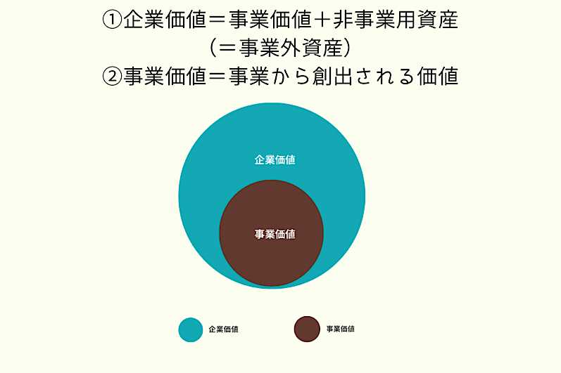 企業価値 = 事業価値 + 非事業価値(非事業用資産)