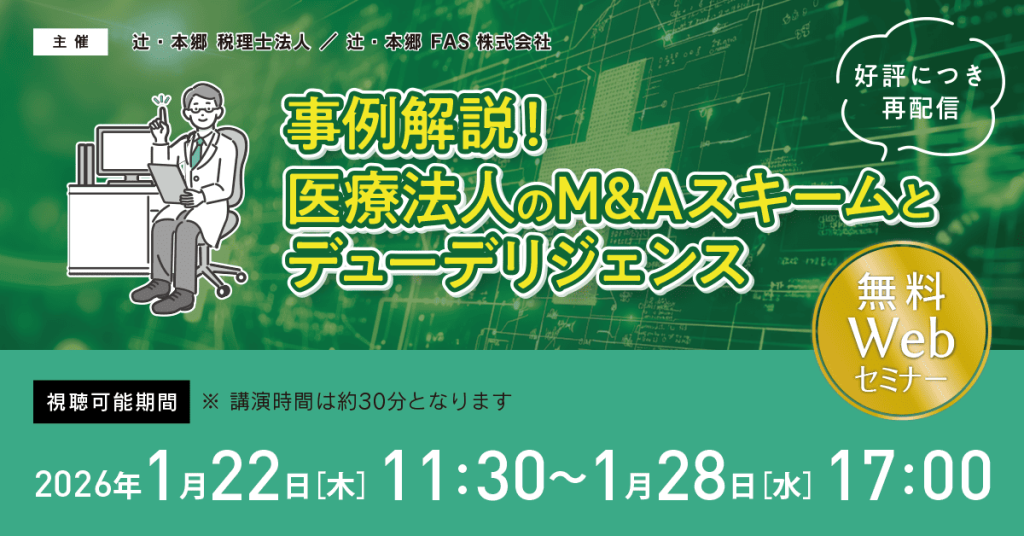 医療法人・クリニック 事業承継・M&A【好評につき再配信】事例解説! 医療法人のM&Aスキームとデューデリジェンス