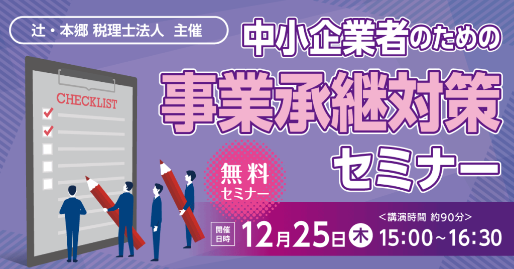 本セミナーでは、「事業承継とは何か」という基礎から、事業承継に取り組む経営者様、後継者様に向けて、事業承継対策や自社株対策について具体的な事例を交えながら、税金対策のアプローチを徹底解説します。