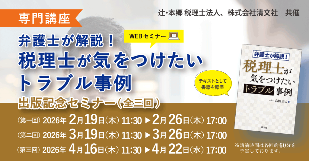 【専門講座】『弁護士が解説! 税理士が気をつけたいトラブル事例』出版記念セミナー(全三回)