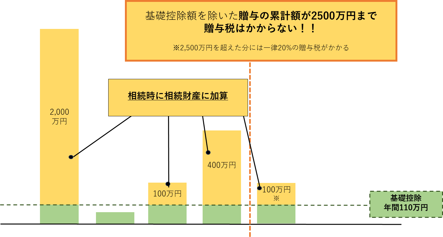 4.【相続時精算課税】最大2,500万円まで贈与税がかからず、相続時に相続税がかかる