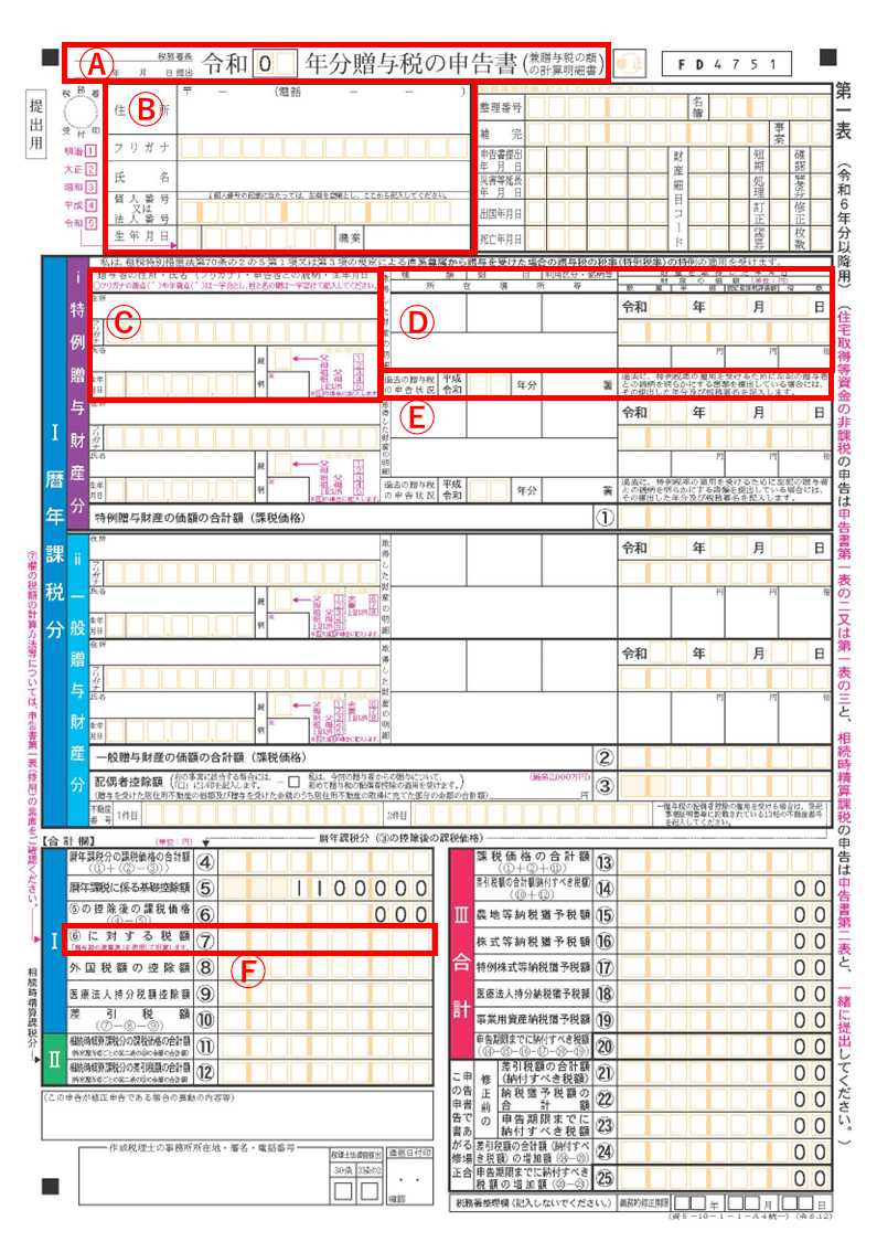 贈与税の申告書 第一表