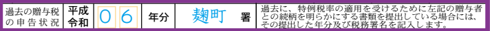 過去に、特例税率の適用を受けるためにⒸに記入した贈与者との続柄を明らかにする書類を税務署に提出している場合には、その提出した年分及び税務署名を記入します(提出をしていない場合には記入しません。)