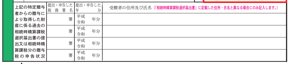 過去の相続時精算課税についての申告状況を記載しましょう。