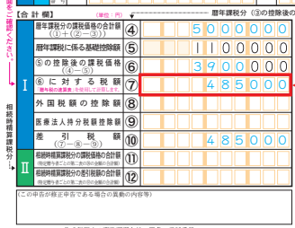 ④から⑤の基礎控除を差し引き、⑥に入力しておきます。