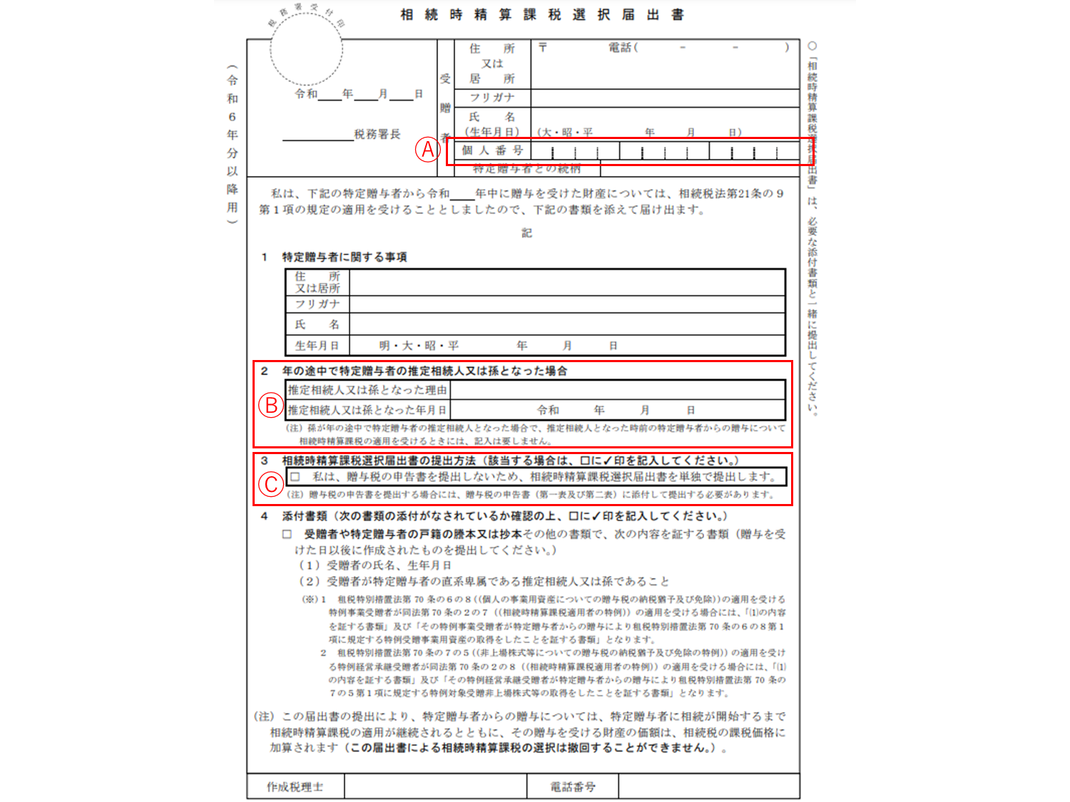 相続時精算課税選択届出書
