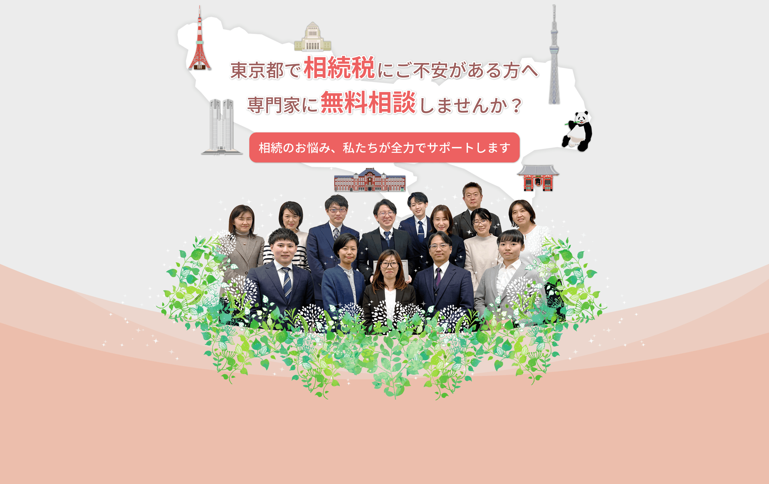 昨年度の相続税申告件数は読み込み中…件(読み込み中…)。業界トップクラスの実績を誇り、長年にわたり蓄積してきた豊富なノウハウと高い専門性を活かして、皆様に安心をお届けいたします。はじめて相続を経験される方や手続きに不安のある方にも丁寧に寄り添いながら、ご事情や財産内容に応じた最適な申告サービスをご提供し、安心してご相談いただける体制を整えています。
