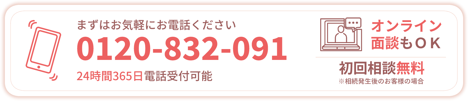 お電話の受付は24時間365日受付可能です。土日祝日、平日夜間の面談をご希望の場合は、担当者へお申し付けください。
